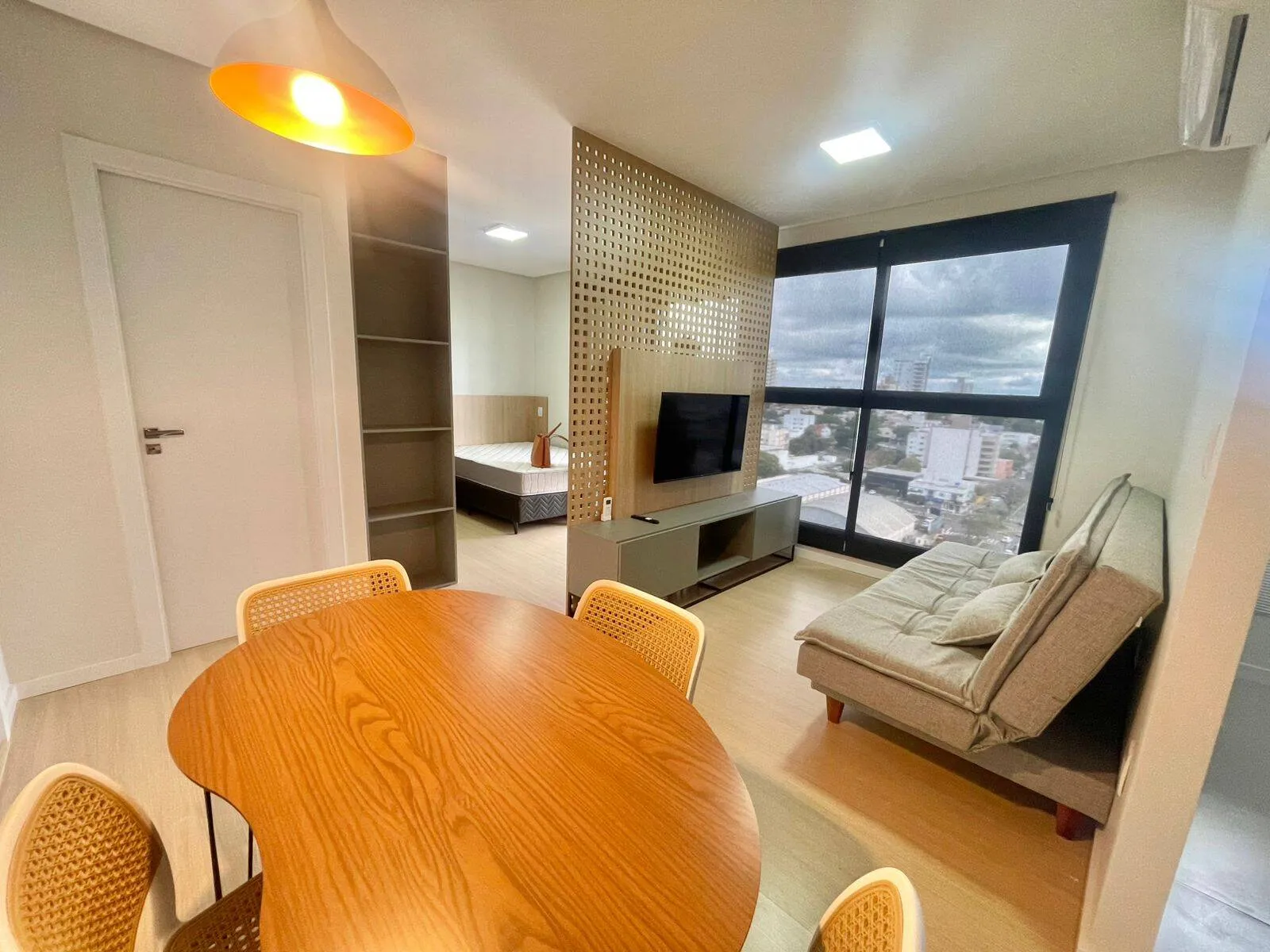 Características do imóvel Academia Aquecimento a gás Ar condicionado Área pet Cozinha com mobilia Elevador Escritório Lavanderia Mobiliado Parquinho para as crianças Piscina aquecida Piso laminado Piso porcelanato Playground Sala de estar Salão de festas